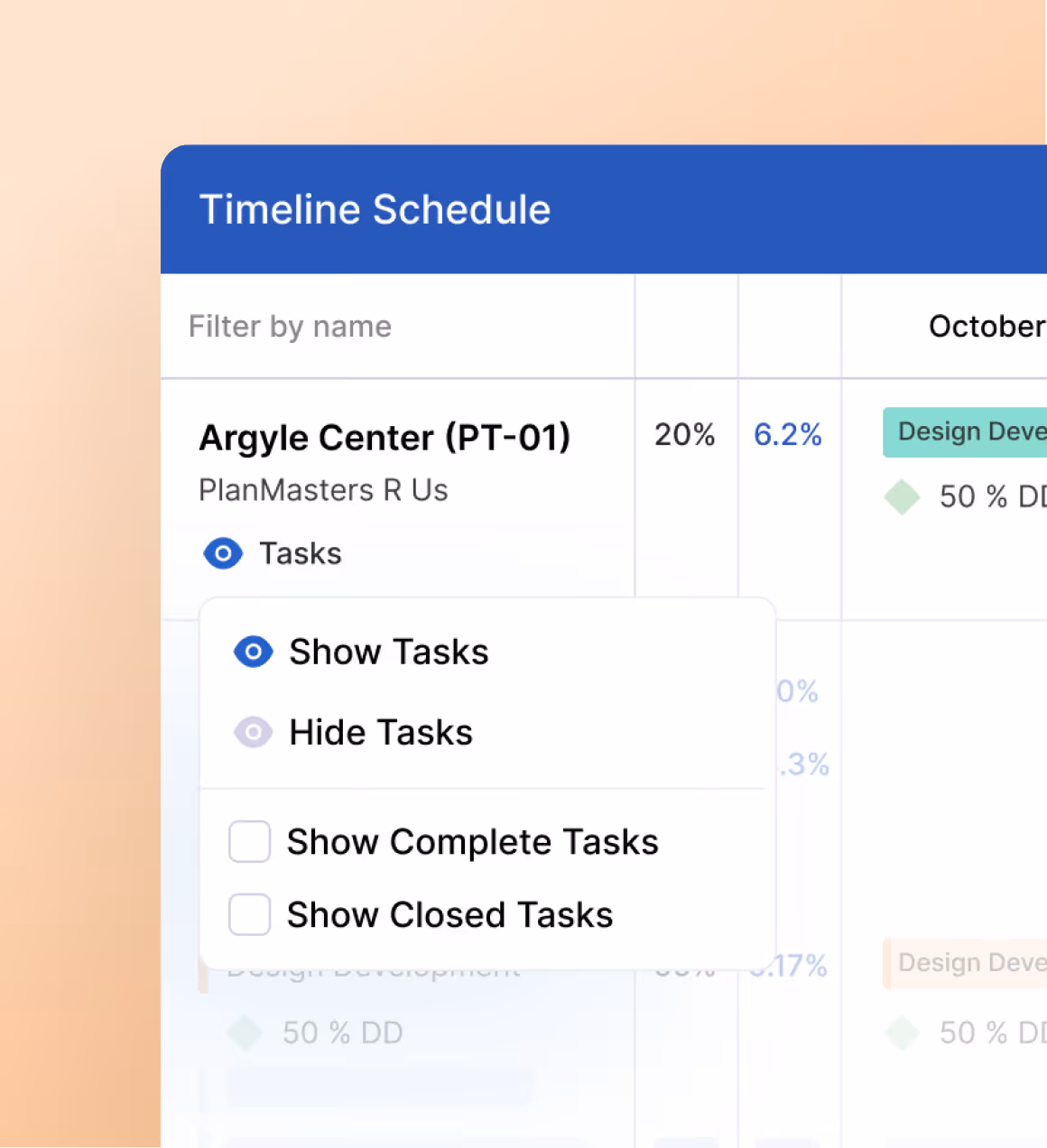 Plan phases, tasks, and milestones in one view, spot overlaps in seconds, and keep budgets, forecasts, and percent complete in sync.