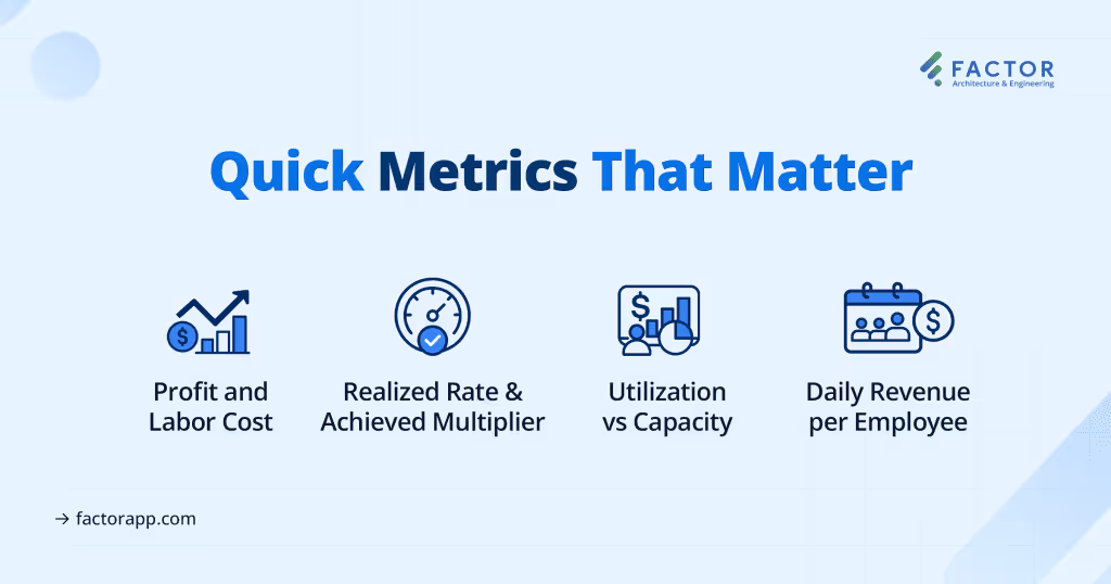 Revenue: This is the total income your firm earns from all projects and services. It is the starting point for measuring financial health.
