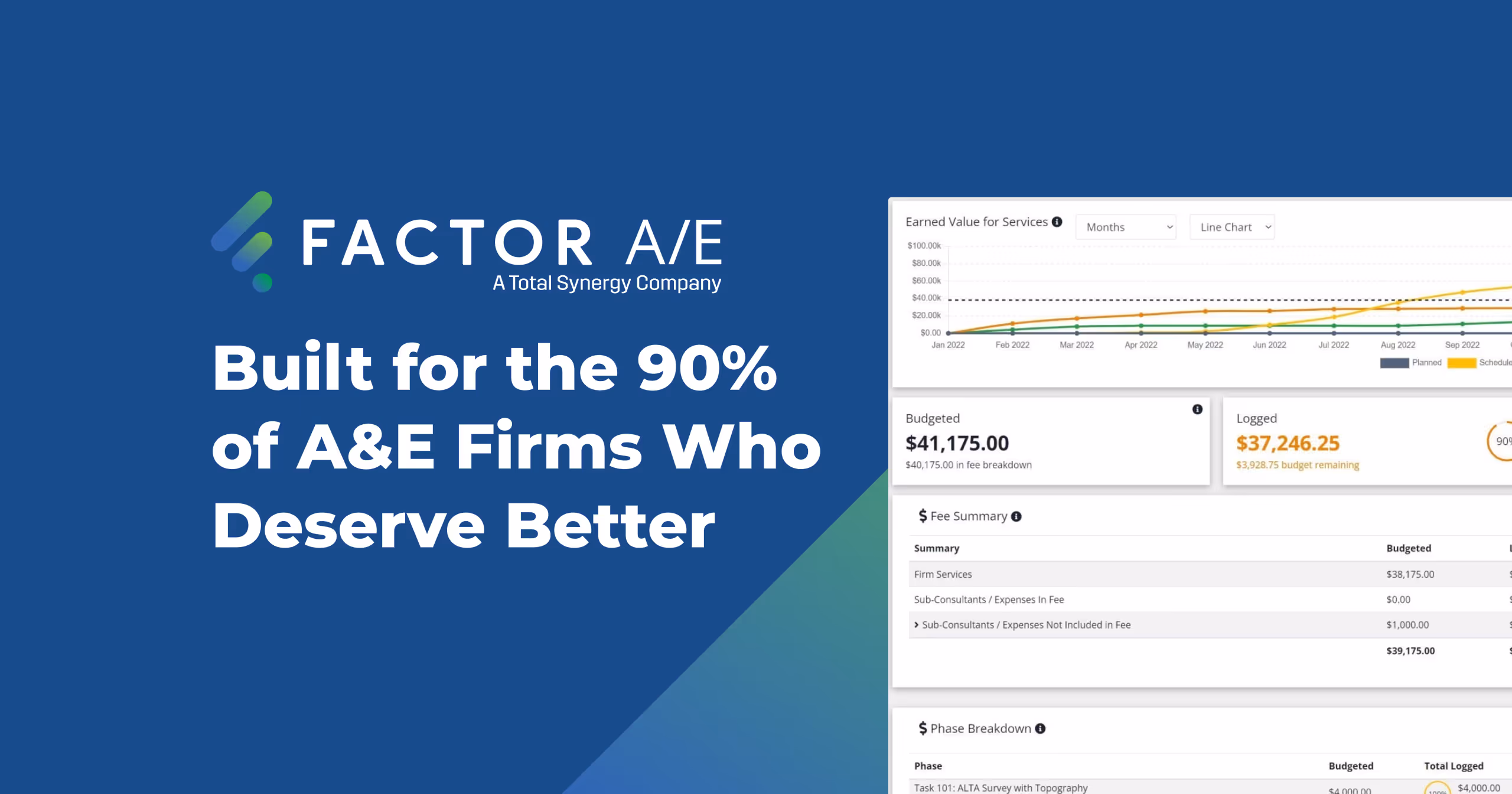 We know exactly what the 90% of small and mid-sized A&E firms want because we have been listening to them for years. Factor AE wasn’t built on one person’s idea of how A&E firms should work. It was built on years of feedback from firms about what they actually need.