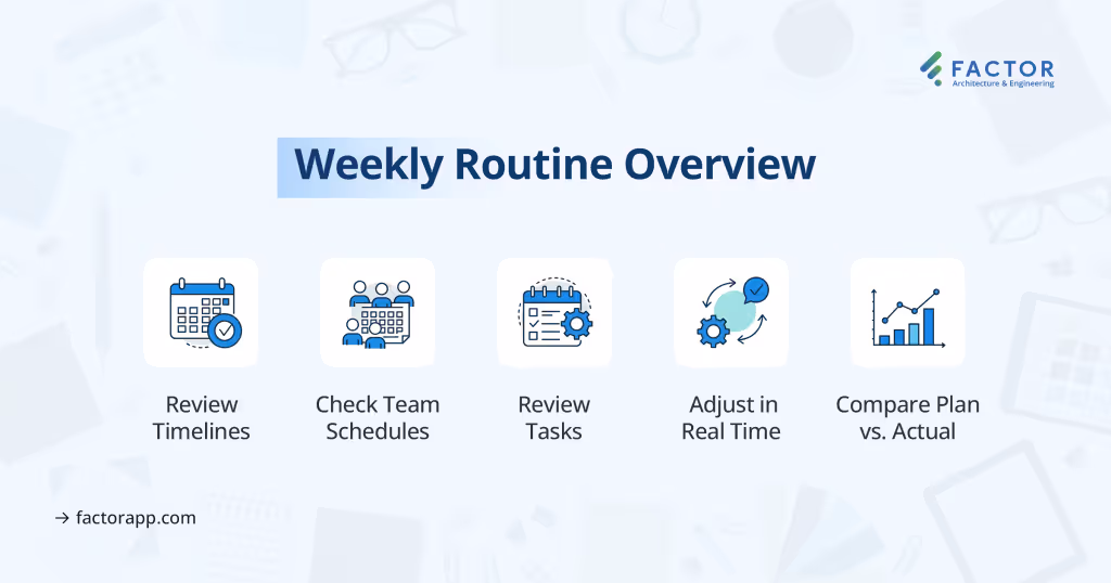Factor was built specifically for architecture and engineering firms. It handles your full project lifecycle—budgeting, scheduling, time tracking, invoicing—and makes this weekly routine easier to manage.